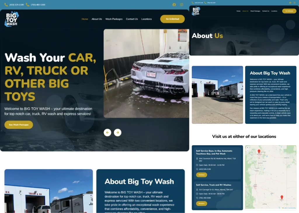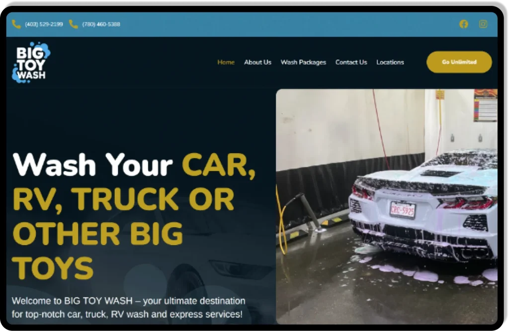 With a responsive design and optimized performance, the website helps Big Toy Car Wash attract more customers and improve accessibility to its services.